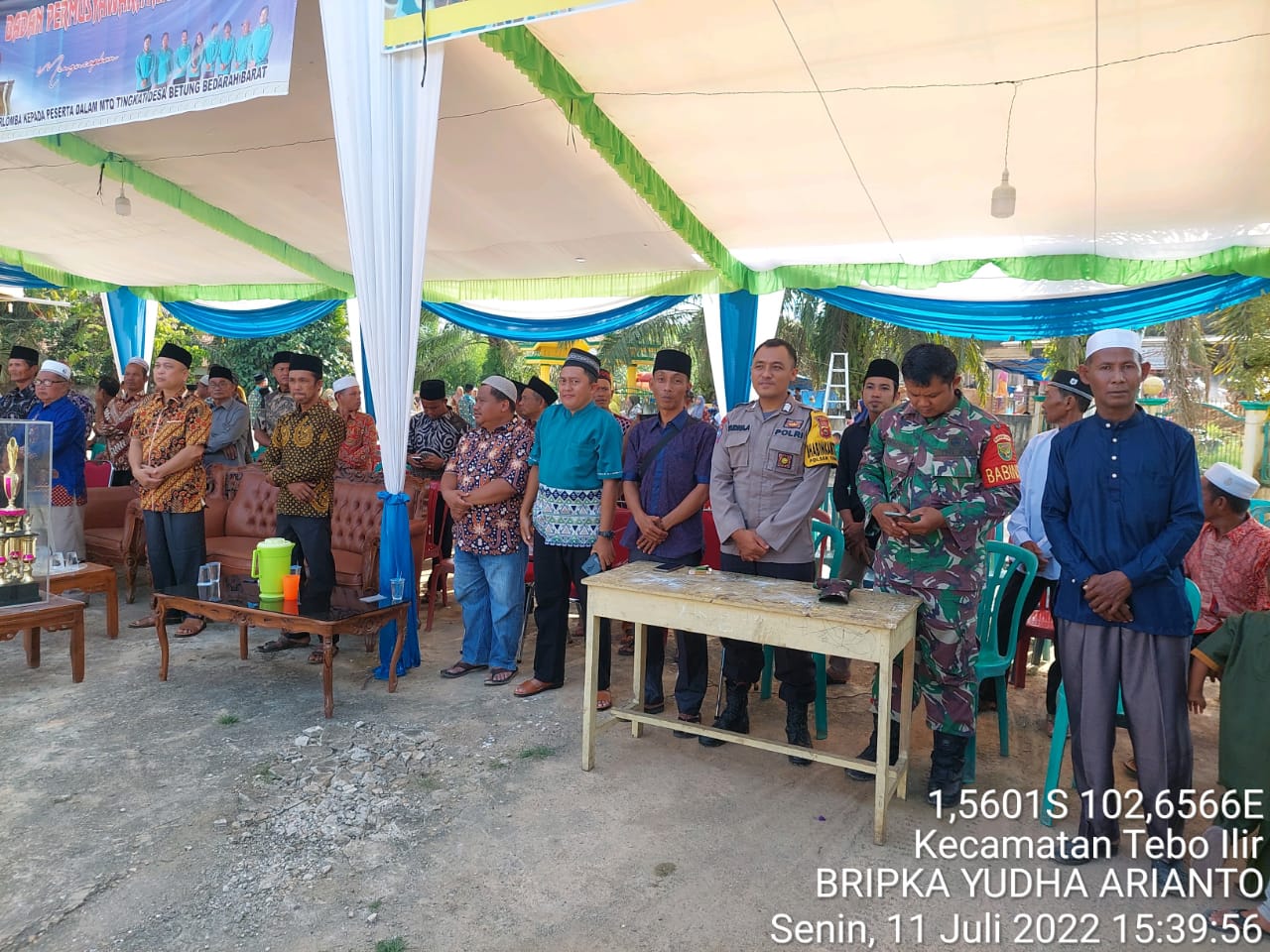 Tebo – Bhabinkamtibmas (BKTM) Polsek Tebo Ilir menghadiri acara pembukaan Pawai MTQ ke 5 di Kecamatan Tebo Ilir. Acara ini dilaksanakan di Desa Betung Bedara Kec. Tebo Ilir, Senin (11/7).