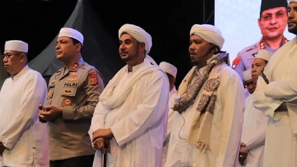 Kapolda Aceh Irjen Pol. Drs. H. Ahmad Haydar, S.H.,M.M bersama ribuan personil kepolisian dan masyarakat lainnya terlihat sangat khusyuk dalam mengikuti acara Aceh Bershalawat, yang ditujukan untuk Baginda Nabi Muhammad SAW, dipimpin oleh Habib Jamal Bin Toha Bagil dan Habib Abdul Haris Alaydrus.