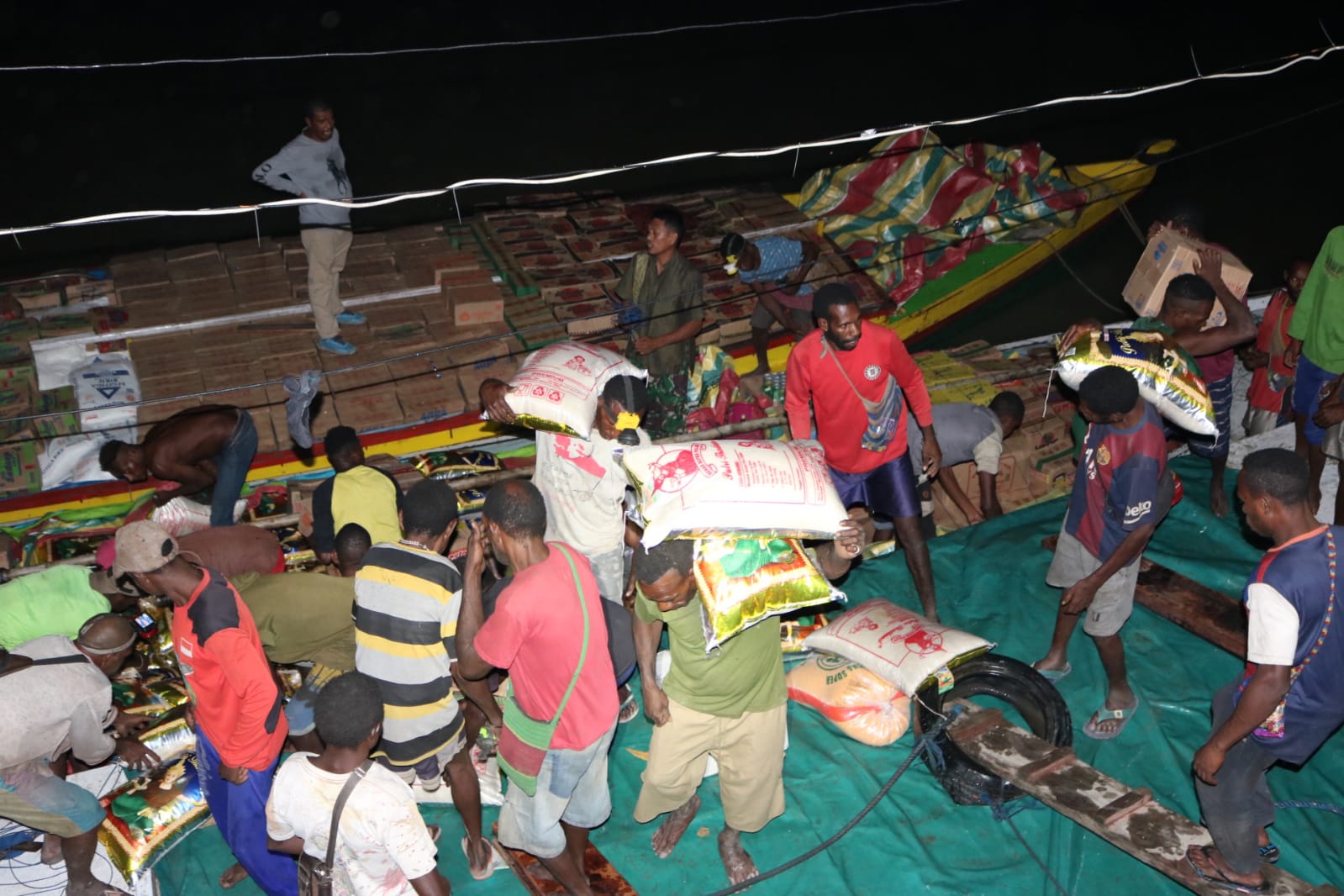 Kenyam – Kapolres Nduga AKBP Rio Alexander Panelewen, S.IK meminpin langsung pembongkaran dan pengawalan Sembilan Bahan Pokok (Sembako) milik H. sahabudin (Toko Sumber Grosir) dan Bapak Harun Jamaludin (Kios Asyyifa) dari Pelabuhan Batas Batu menuju Kota Kenyam, Kabupaten Nduga (04/08/2022).