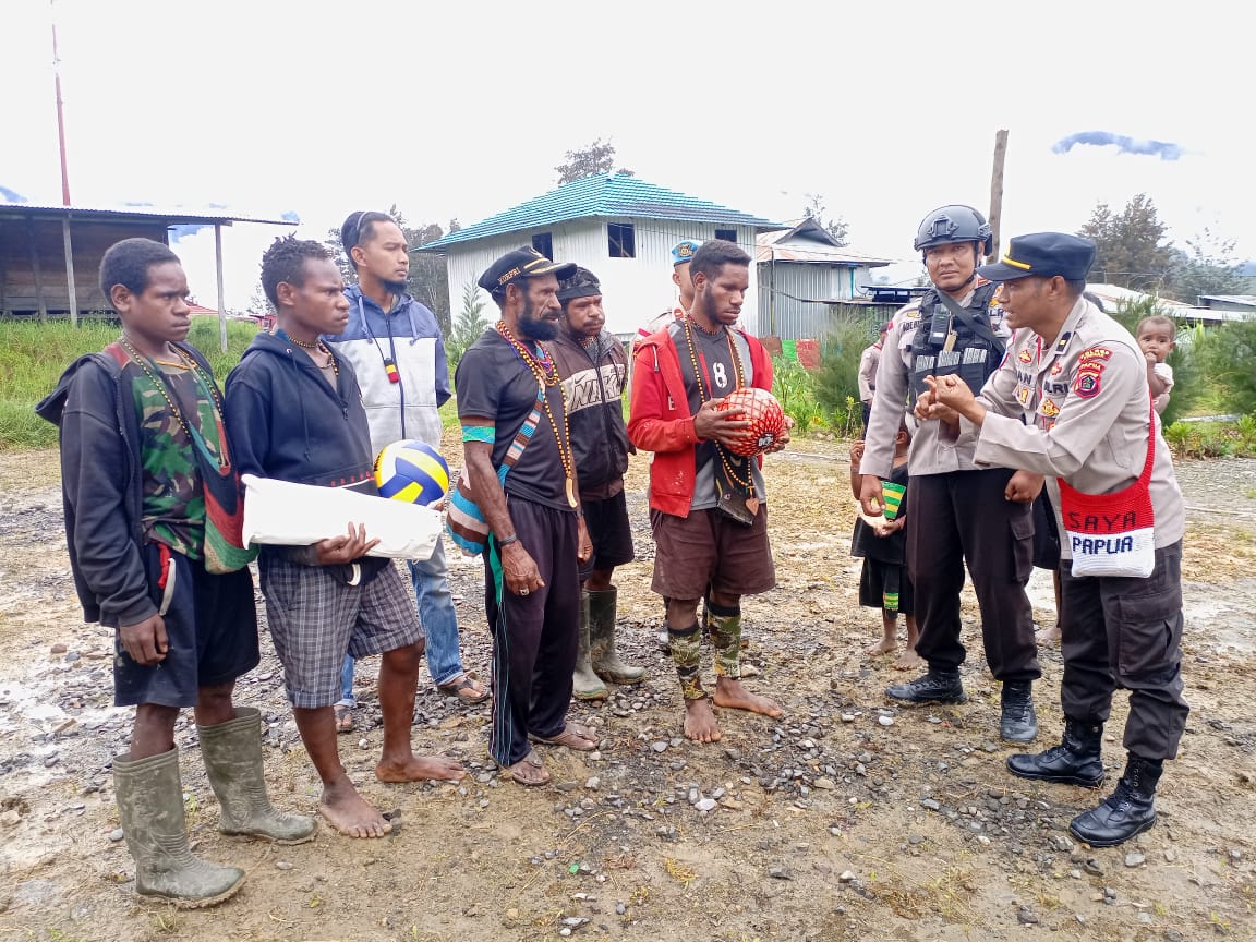 “Diakhir kegiatan kami menyerahkan peralatan olahraga seperti bola kaki, bola voli dan net bola voli. Kami juga menyerahkan paket sembako kepada Bapak Yonius Ganie, diharapkan pemberian bantuan ini dapat bermanfaat bagi Bapak Yonius Ganie dan keluarga” tutup Ipda Yan