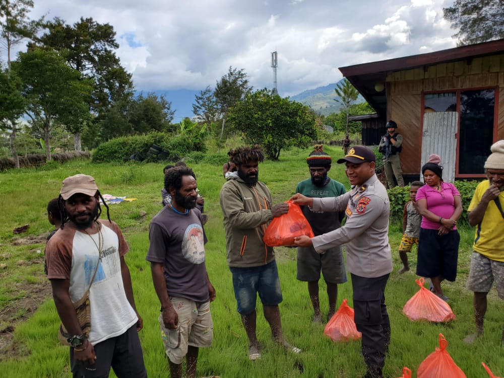 Wamena – Satgas Binmas Noken Jayawijaya bersama Satgas Preventif lakukan bagi sembako kepada masyarakat di sekitar Kampung Hulekema dan Honelema sebagai bentuk Kepedulian Polri.