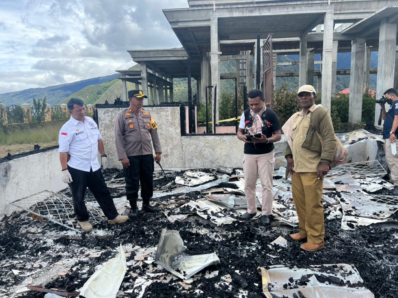 Dogiyai – Tim Bid Lapfor Polda Papua yang dipimpin Kabid Labfor AKBP Drs. Maruli Simanjutak,M.H menggelar olah TKP kasus kebakaran yang terjadi di kantor salah satu gedung DPRD bertempat di Distrik Kamuu, Kab. Dogiyai, Jumat (19/08).