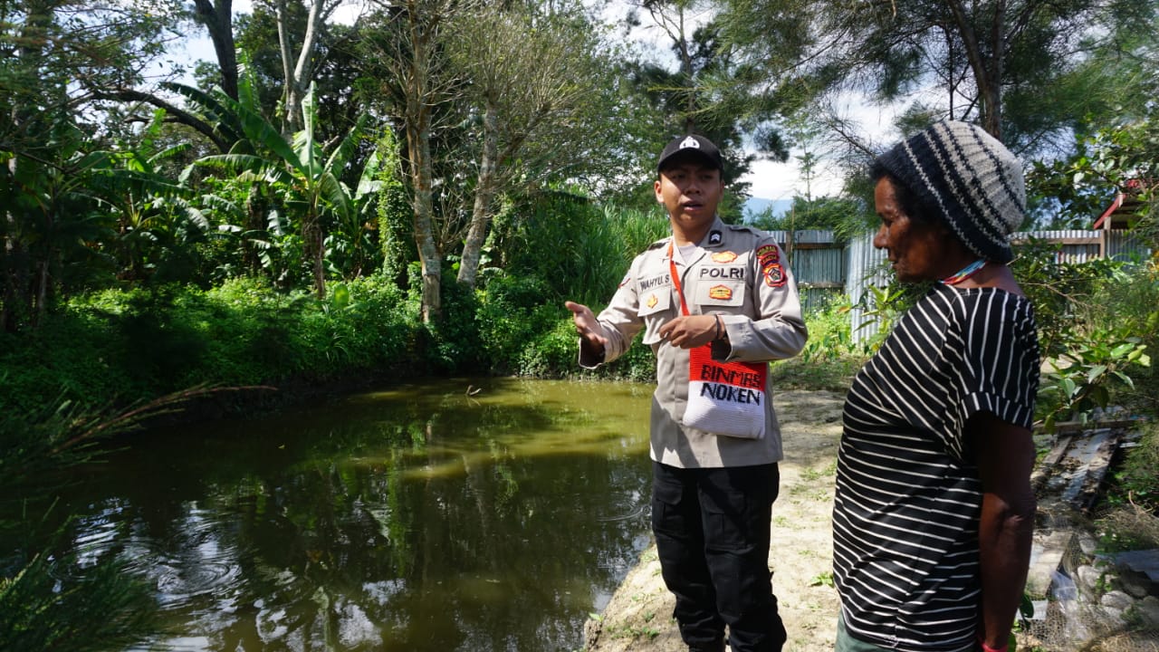 Wamena – Binmas Noken Jayawijaya yang dipimpin oleh Iptu Made Sujana, A.md, Pd kunjungi Spot perikanan air tawar dan Pertenakan Babi milik Karel Kosay di Kampung Honailama Dua, Kabupaten Jayawijaya.