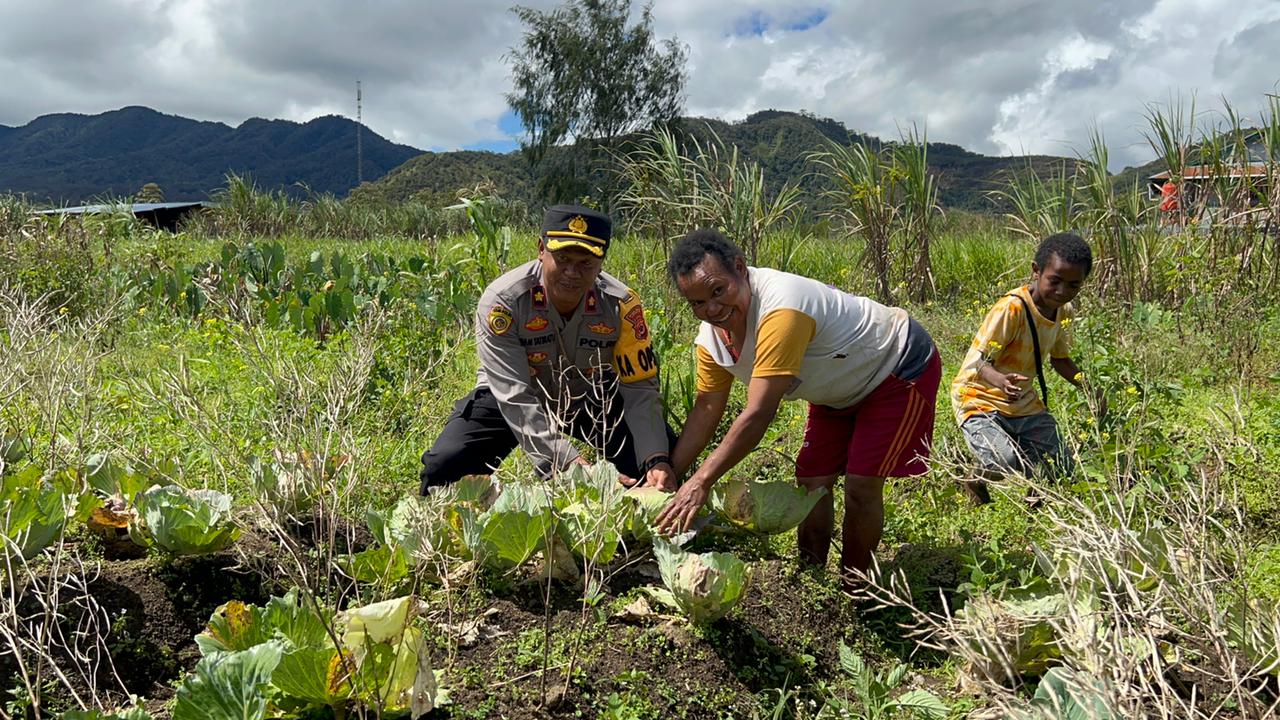 Selain mengunjungi dan berdiskusi Kapolres juga memberikan bantuan berupa Sembako kepada para petani dan diharapkan dengan adanya bantuan sembako dan juga diskusi ini dapat menjadikan pertanian milik Ibu Yantina Pekei menjadi lebih baik lagi.