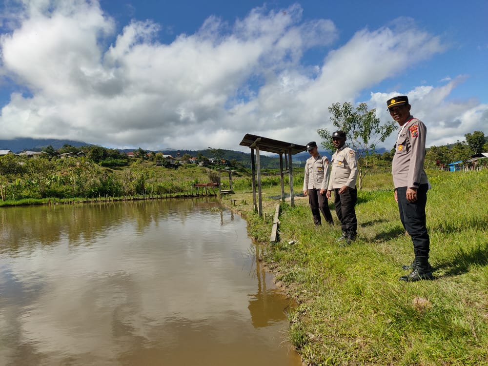 Kedatangan Binmas Noken melakukan pengecekan untuk memastikan bibit dan kolam perikanan di kampung Dabolding milik warga binaanya dalam keadaan baik dan terawat.