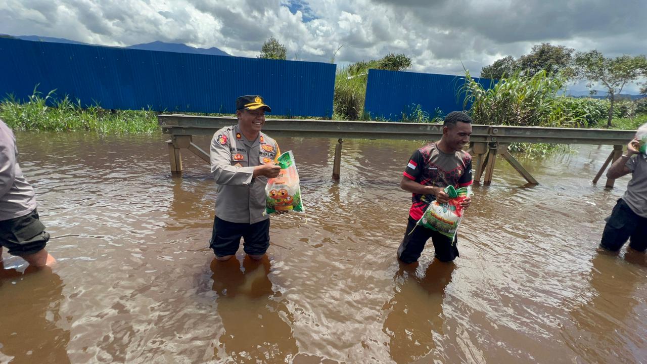 Dogiyai – Kapolres Dogiyai Kompol Samuel D Tatiratu SIK bersama dengan Binmas Noken nekat untuk terjang Sungai untuk berikan bantuan kepada SD Negeri Inpres Bukapa yang di terima langsung oleh Kepala Sekolah Bapak Saul Iyai yang bertempat di Distrik Kamuu Selatan Kab. Dogiyai