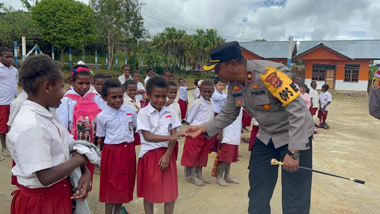 Kapolres Dogiyai dan Ketua Cabang Bhayangkari Serta Binmas Noken Ajari Anak Sekolah