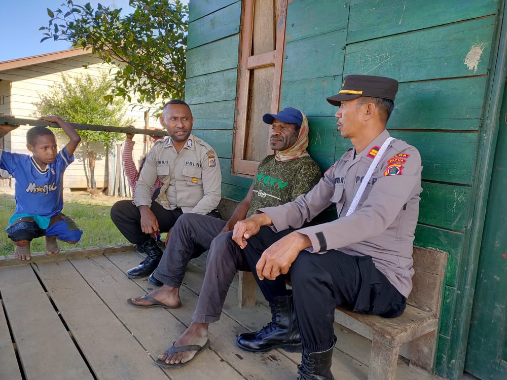 Pegubin – Satgas Binmas Pegunungan Bintang menyambangi salah satu tokoh Masyarakat Kampung Pulbingin Okto Kalakmabin dalam program ‘Koteka’. Kegiatan ini digelar Ipda Jufri Rambu bersama anggotanya dalam meningkat silaturahmi dengan masyarakat, Selasa (30/8/22).