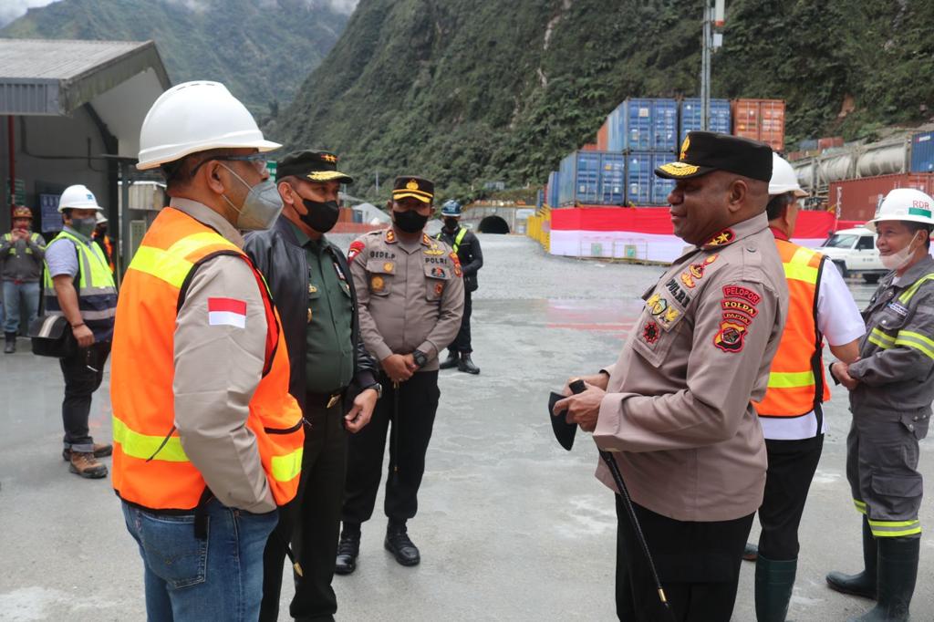 Jayapura – Kepala Kepolisian Daerah Papua Irjen Pol Mathius D.Fakhiri, S.I.K mendampingi Presiden Rebuplik Indonesia Ir. H. Joko Widodo dan Ibu Negara Hj. Iriana Joko Widodo beserta rombongan yang melaksanakan Kunjungan Kerja di PT.Freeport Indonesia Distrik Tembagapura Kabupaten Mimika, Kamis (1/9).