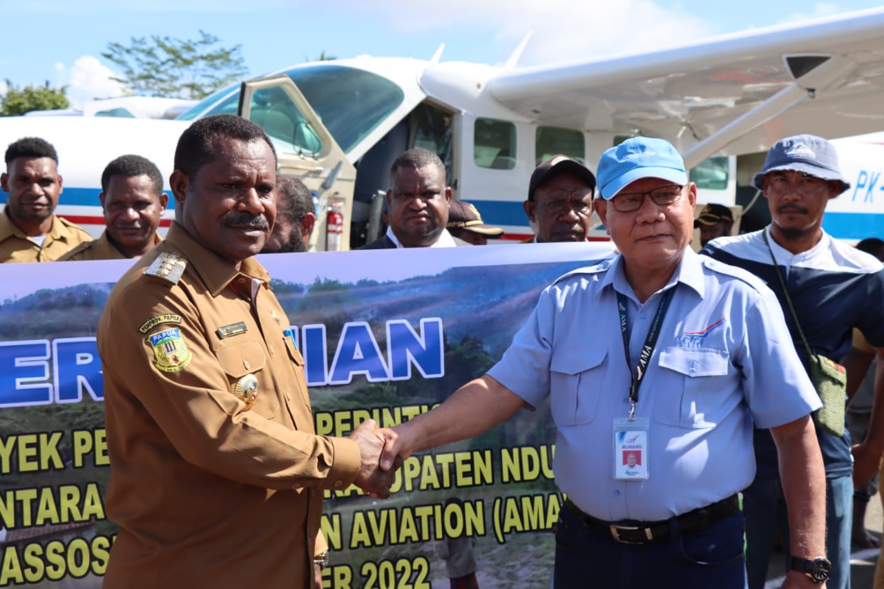 Bupati Nduga Namia Gwijangge,Spd, Msi dalam kesempatannya mengatakan bahwa program kerjasama ini dilakukan demi kemajuan kabupaten Nduga dan agar semua dapat menikmati fasilitas transportasi udara.
