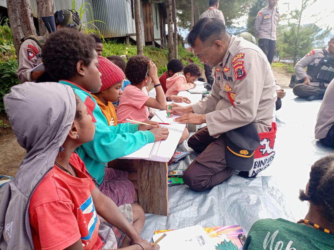 Korwil Binmas Ops Damai Cartenz Wilayah Puncak Ipda Yan Amos Wambrauw, S.Sos mengatakan, kami tidak henti-henti terus menggalakkan program Polisi Pi Ajar guna mendukung dan mencerdaskan anak-anak dipedalaman papua khususnya di Kabupaten Puncak.