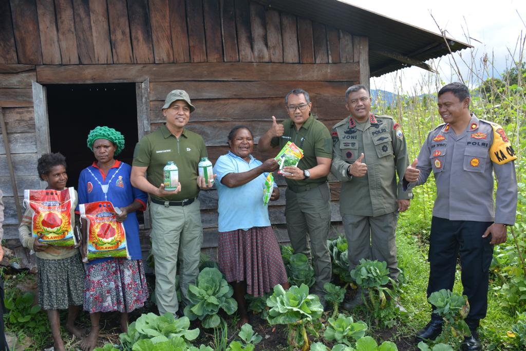 Dalam kesempatan tersebut Wakaops 1 Kombes pol Bambang Widjanarko baiin S.I.K,. M.Si memberikan bibit sayuran serta beberapa pupuk dan juga sembako kepada ibu Albertina Tebai yang nantinya dapat digunakan dan dikembangkan untuk menjadi percontohan kepada masyarakat lainya