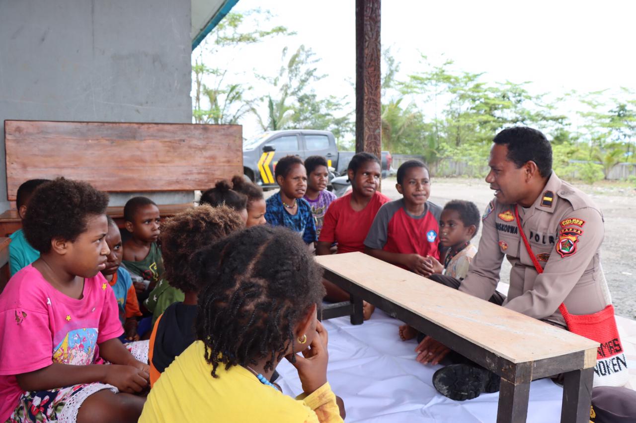 Pada kegiatan kali ini personil Binmas noken mengajarkan anak-anak usia 4-12 tahun, untuk menghafal Huruf Abjad serta memberikan buku yang berisikan cerita bergambar untuk menambah minat anak-anak dalam membaca.
