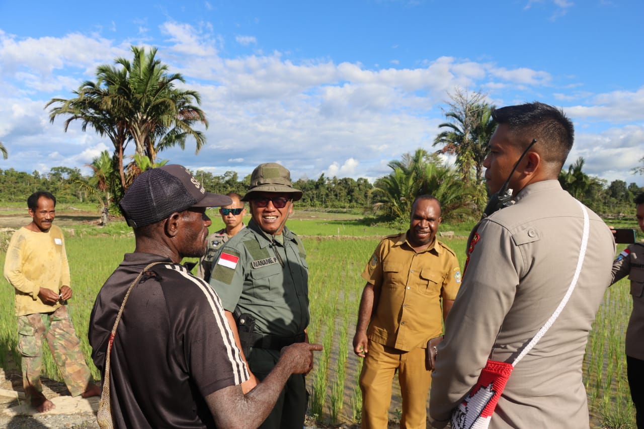 Setibanya di Kampung Moruku, Kombes Pol Nanang bersama rombongan langsung meninjau lapangan kerja yang tengah dikembangkan Satgas Binmas Noken Wilayah Yahukimo.