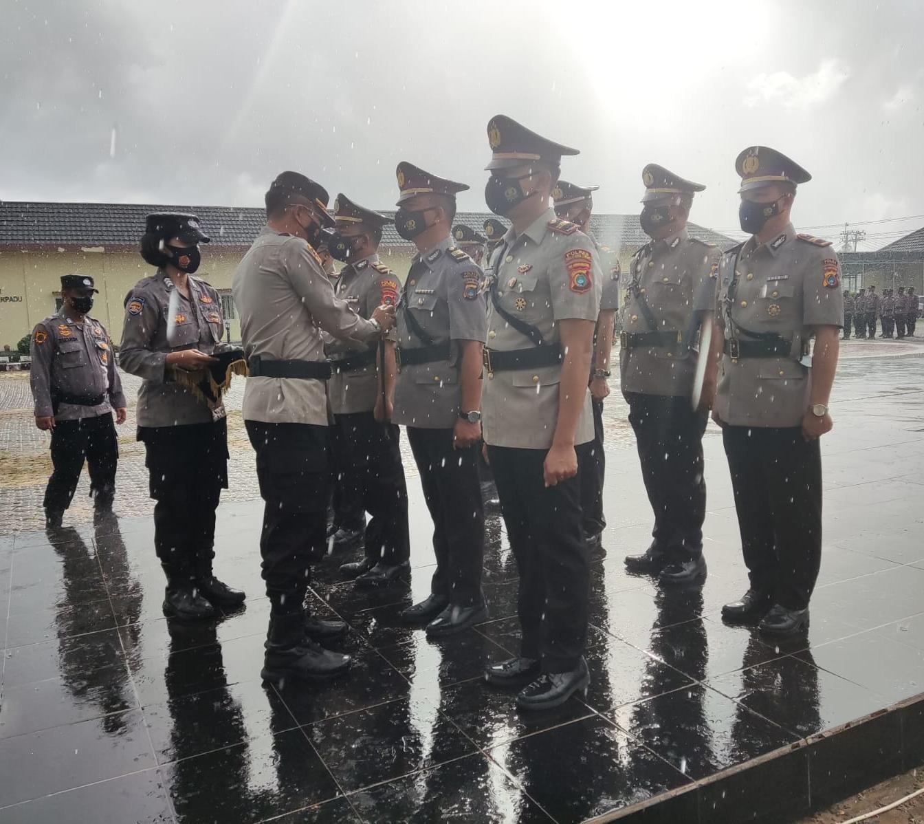 Polres Belitung Timur, Hubungan Masyarakat – Manggar, Kapolres Belitung Timur AKBP Taufik Noor Isya, SIK memimpin pelaksanaan serah terima jabatan Perwira Polres Belitung Timur dihalaman depan Polres Belitung Timur. Rabu (14/9/2022)