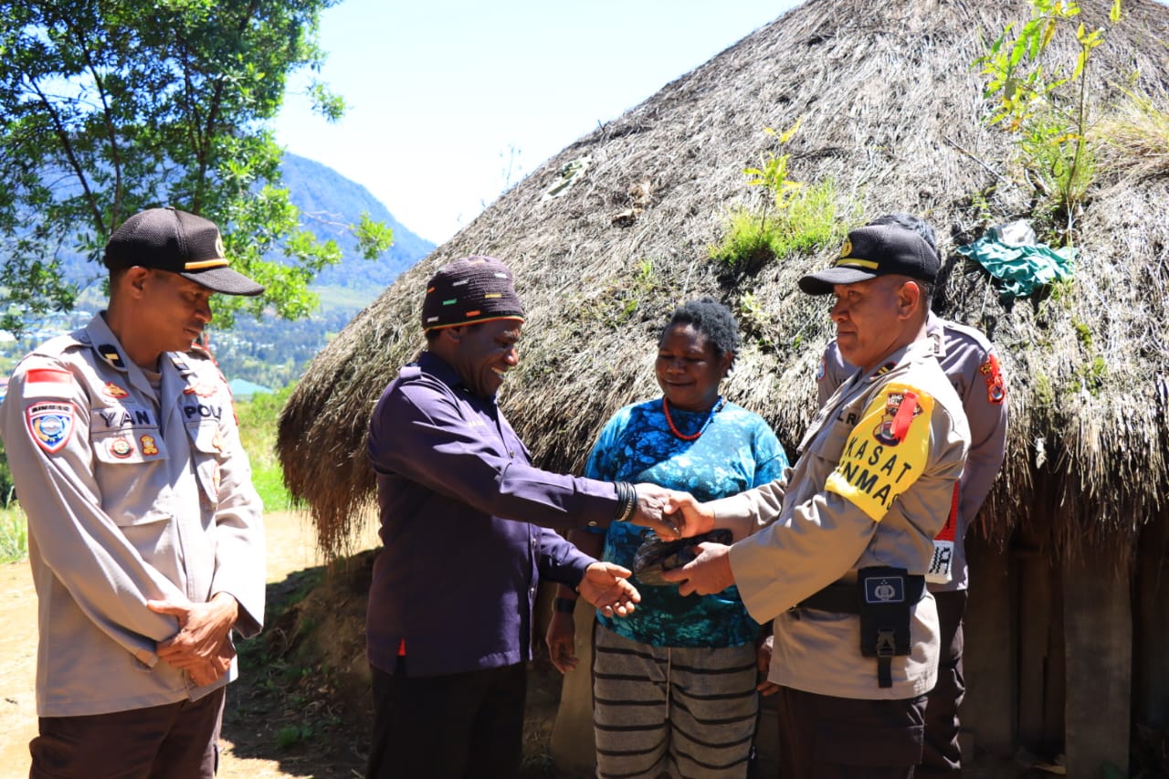 Diakhir kegiatan kami memberikan tali asih berupa sembako kepada Bapak Abelom, diharapkan pemberian bantuan ini dapat bermanfaat bagi Bapak Abelom dan keluarga” tutup Ipda Yan.