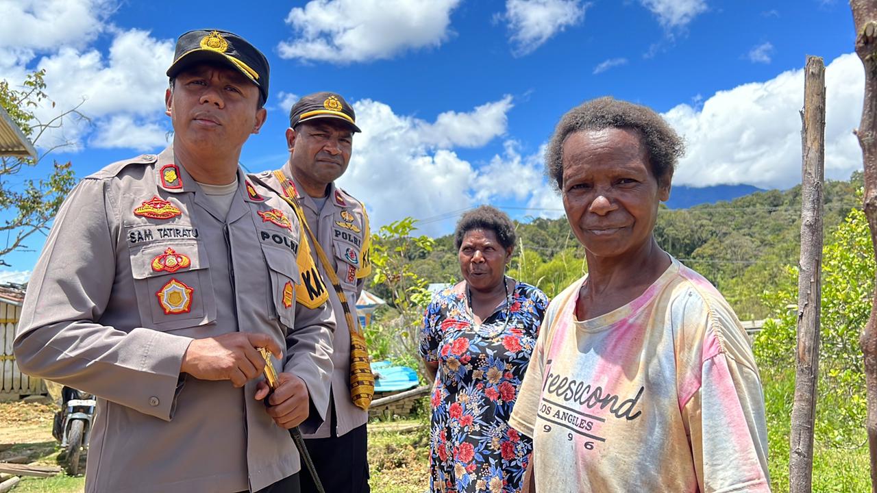 Dogiyai – Kapolres Dogiyai Kompol Samuel D Tatiratu SIK bersama dengan Danpos Satgas Preventif Ipda Yosafat Jandiocassa, S.Tr.K berikan bantuan kepada Ibu Helena Tegei selaku petani sayur yang bertempat di Kampung Bopuya Dusun Ekago, Distrik Mapia, Kab. Dogiyai, Rabu (14/09).