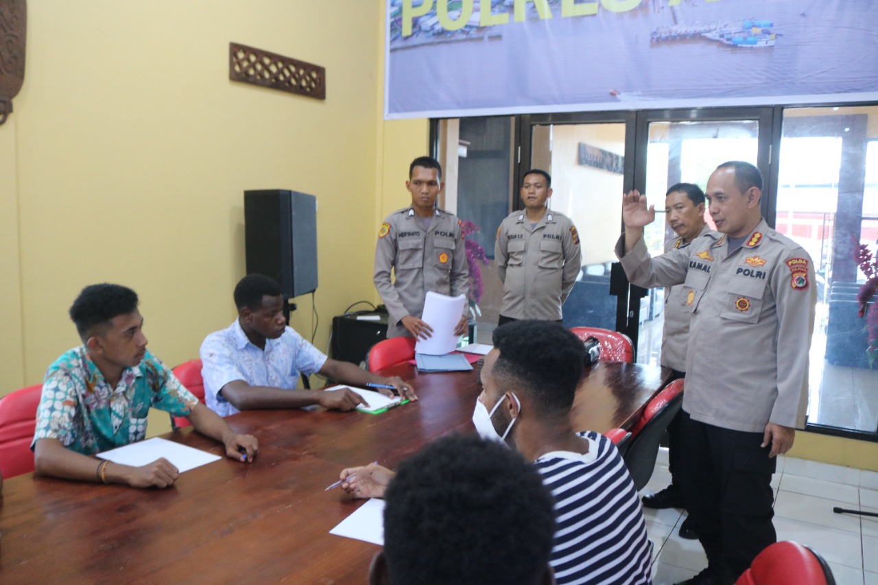 Asmat – Kasatgas Humas Ops Damai Cartenz Kombes Pol Drs. Ahmad Musthofa Kamal, SH., lakukan asistensi terhadap pendaftar Orang Asli Papua (OAP) calon anggota Polri di Polres Asmat yang mendapatkan pembinaan dan latihan (Binlat), Kamis (15/9).