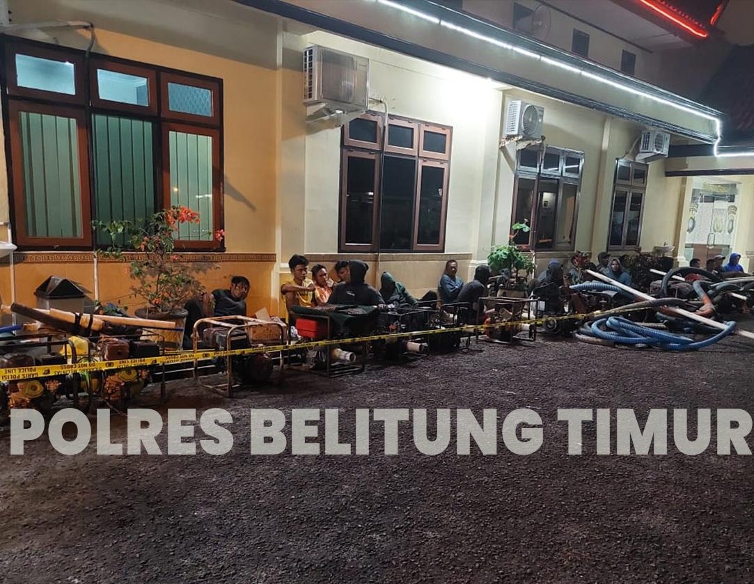 “Bersama dengan Sat Polairud, Sat Intelkam, dan Polsek Manggar kita datang ke lokasi dan menemukan aktifitas penambangan sedang berlangsung, kemudian kita lakukan penindakan, dan hasil dari penindakan didapati 67 ( enam puluh tujuh ) penambang dan 22 (dua puluh dua) set mesin jenis robin yang diamankan ke Mapolres Belitung Timur,” tambahnya.