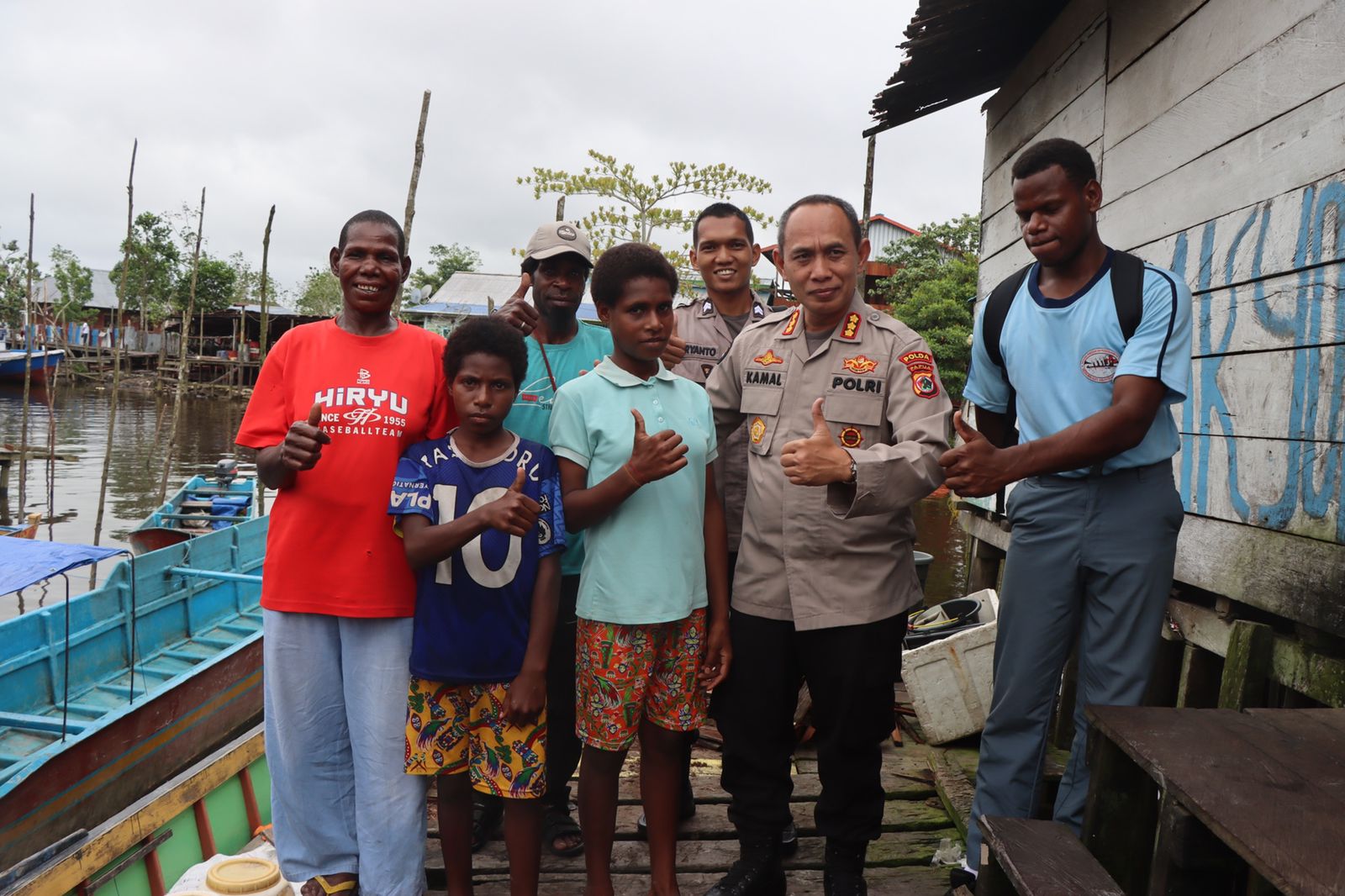 Asmat – Kasatgas Humas Ops Damai Cartenz Kombes Pol Drs. Ahmad Musthofa Kamal, SH., disela-sela asistensinya di Polres Asmat mengunjungi Keluarga Karel Dadimu di Kampung Ocenep, hal tersebut juga guna memberikan motivasi dan penguatan kepada Pendaftar Calon Anggota Polri, Jumat (16/9).