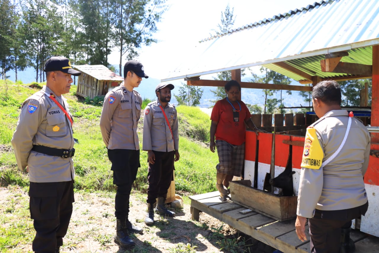 Ilaga – Program Kesejahteraan Untuk Anak Negeri (Kasuari) terus ditingkatkan, kali ini Binmas Noken Ops Damai Cartenz wilayah Puncak meninjau Spot Peternakan milik Bapak Yarinus Hagabal Distrik Ilaga Kabupaten Puncak, Sabtu (17/09/2022).