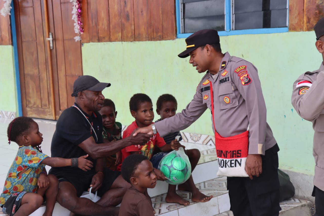 Dalam perjumpaan ini juga personil Binmas Noken juga memberikan bantuan berupa bola kaki dan bola volly yang dapat dipergunakan pemuda Gereja setiap sore melakukan olahraga ataupun kegiatan – kegiatan gereja lainnya.