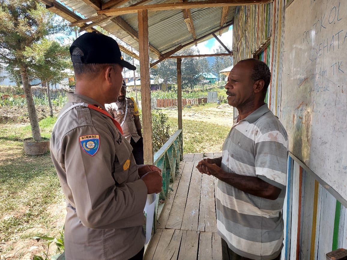 Ilaga – Dalam rangka menjaga jalinan tali silaturahmi bersama para Tokoh di Kabupaten Puncak, pada kali ini personil Binmas Noken menyambangi Bapak Pdt. Samuel Yamon Murib selaku Tokoh Agama di Kampung Ilambet Distrik Ilaga Kabupaten Puncak, Senin (19/09/2022).