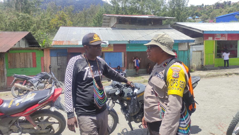 Sugapa – Personel Binmas Noken Wilayah Intan Jaya yang dipimpin Ipda Engel Mayor terus memberi himbauan terkait Kamtibmas kepada masyarakat di Distrik Sugapa Kab. Intan Jaya.