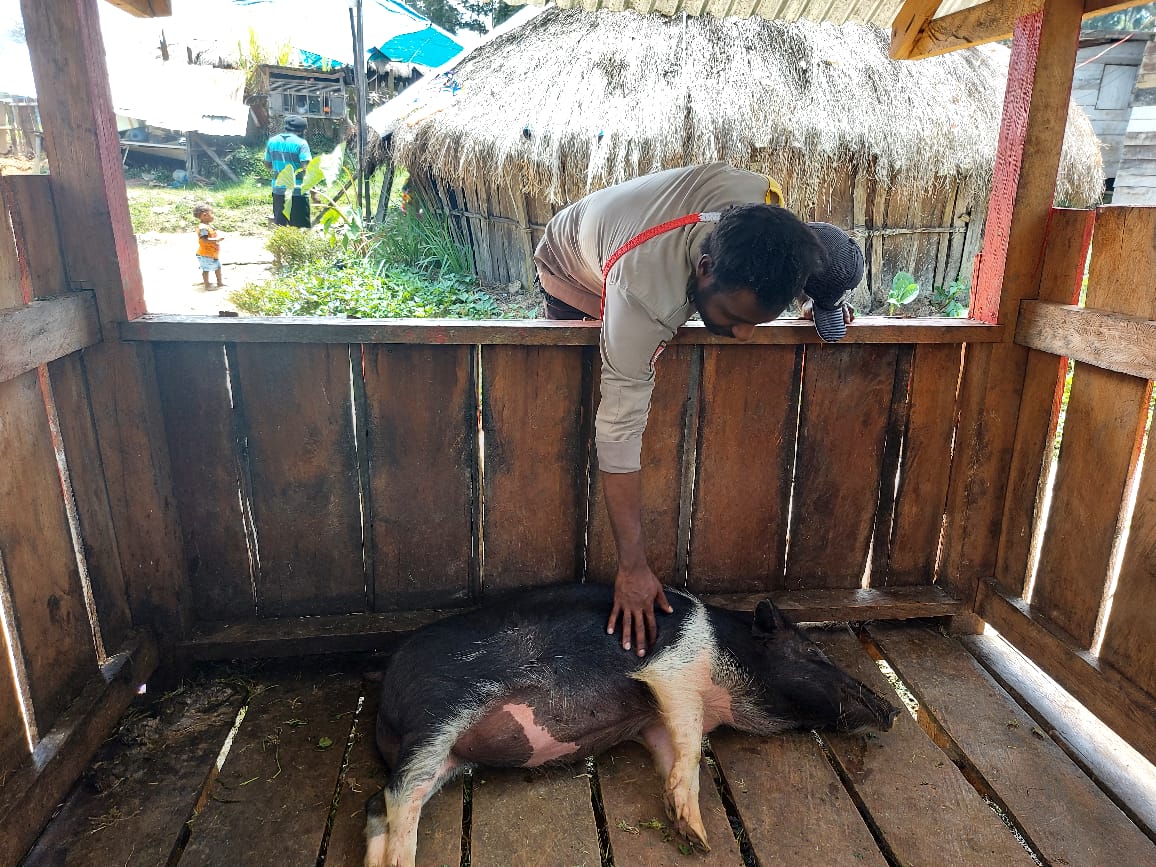 Selain memastikan kesehatan dan kebersihan kandang, personel Binmas Noken juga memberikan pemahaman dan edukasi kepada Bapak Alius Tabuni terkait cara perawatan hewan ternak babi yang baik dan dapat menghasilkan ternak yang bernilai besar di pasaran nantinya.