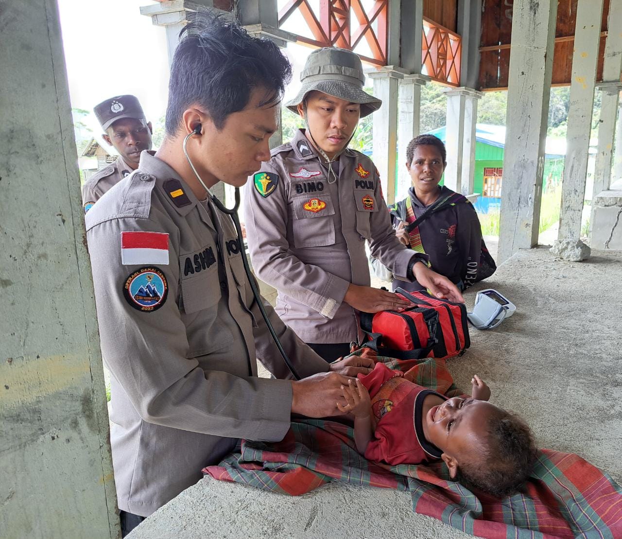 Dogiyai – Tim Medis Binmas Noken Polri yang dipimpin Ipda dr. Ashari Zuprin kembali lakukan pengobatan kepada 2 orang masyarakat yang mengalami gangguan kesehatan bertempat di Distrik Mapia, Kabupaten Dogiyai, Kamis (22/09).