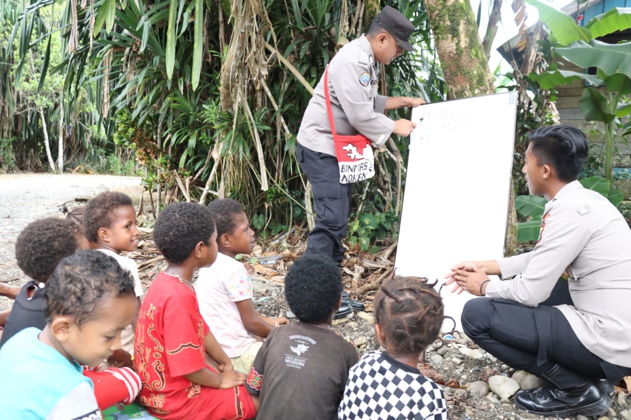 “Tujuannya agar anak-anak tidak lupa dengan pelajaran yang diberikan, lebih paham dan mahir lagi,” ujar IPDA Made, Korwil Satgas Binmas Yahukimo.