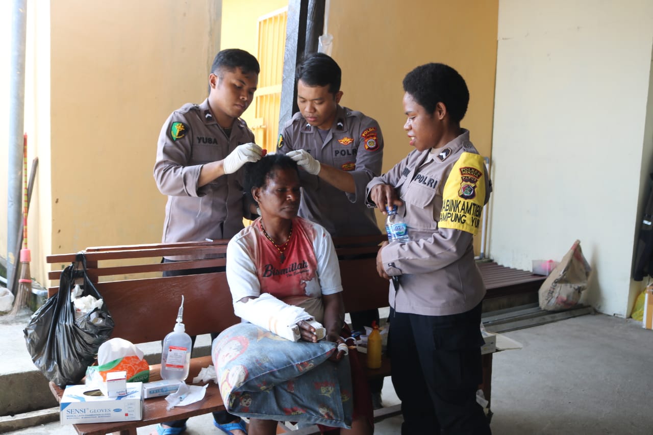 Kenyam – Tim Medis Ops Damai Cartenz yang dipimpin langsung Ipda dr. Ramadhana Yudha Perkasa bergerak cepat memberikan penanganan medis pada Ibu Otopina Murib yang merupakan korban Kekerasan dalam rumah tangga(KDRT) bertempat di Aula Mapolres Nduga, Selasa (27/09/2022) Pagi.