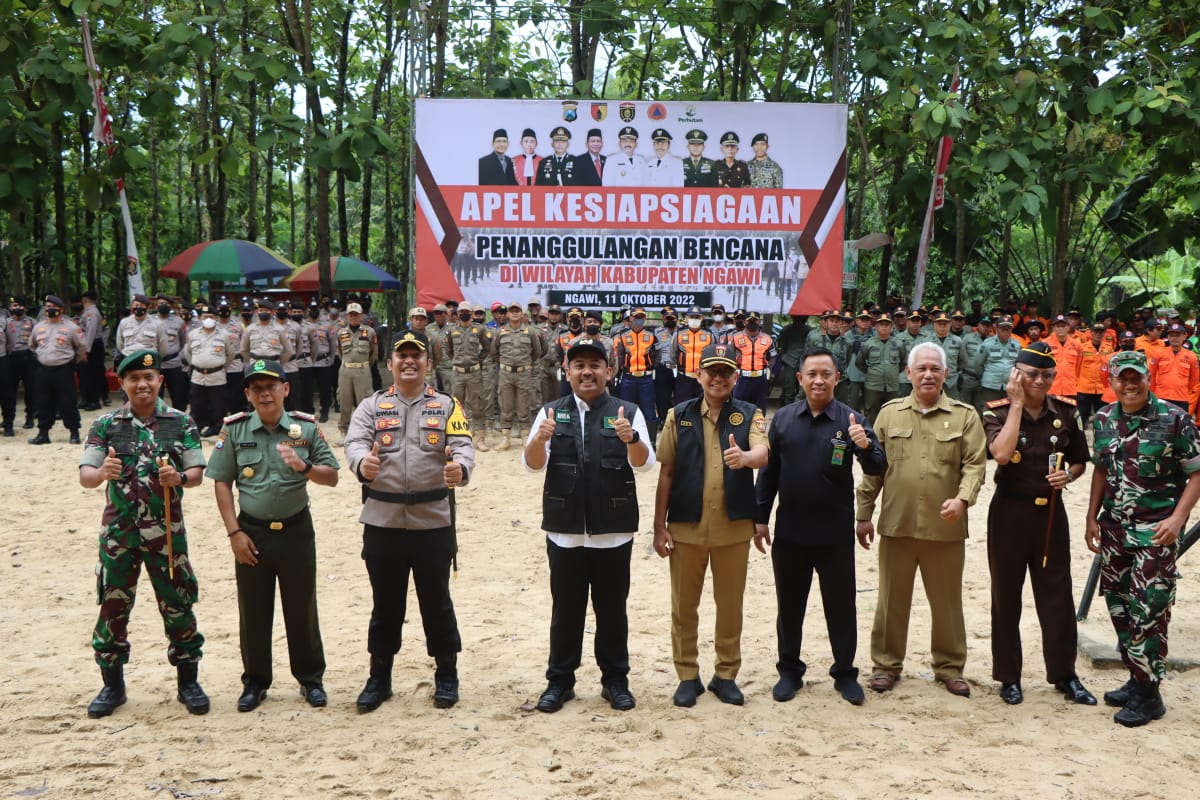 Kegiatan apel diawali dengan pemakaian rompi tanggap bencana berwarna orange oleh Forkopimda Ngawi pada perwakilan instansi terkait dan diikuti oleh 500 peserta terdiri dari Polri, TNI, Dinas Perhubungan, Satpol PP, BPBD, Perhutani dan Polisi Hutan serta relawan kemanusiaan dan bencana alam yang tergabung dalam komunitas tanggap bencana