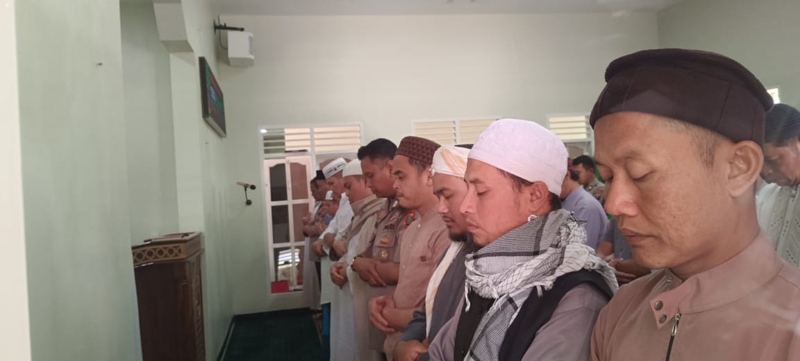 SIDIKALANG// Kapolres Dairi, AKBP Wahyudi Rahman bersama masyarakat menggelar Shalat Ghoib di Masjid Khusnul Khotimah, Kecamatan Sidikalang Kabupaten Dairi, Jumat (25/11/2022).