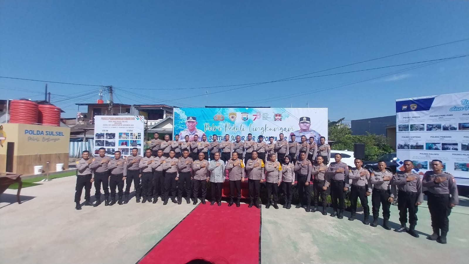 Peresmian sumur bor juga hadir Wakapolda Sulsel, Irwasda, PJU Polda Sulsel, Walikota Makassar, tokoh Agama dan masyarakat BTP Blok AF Kelurahan Katimbang Kecamatan Biringkanaya Kota Makassar.