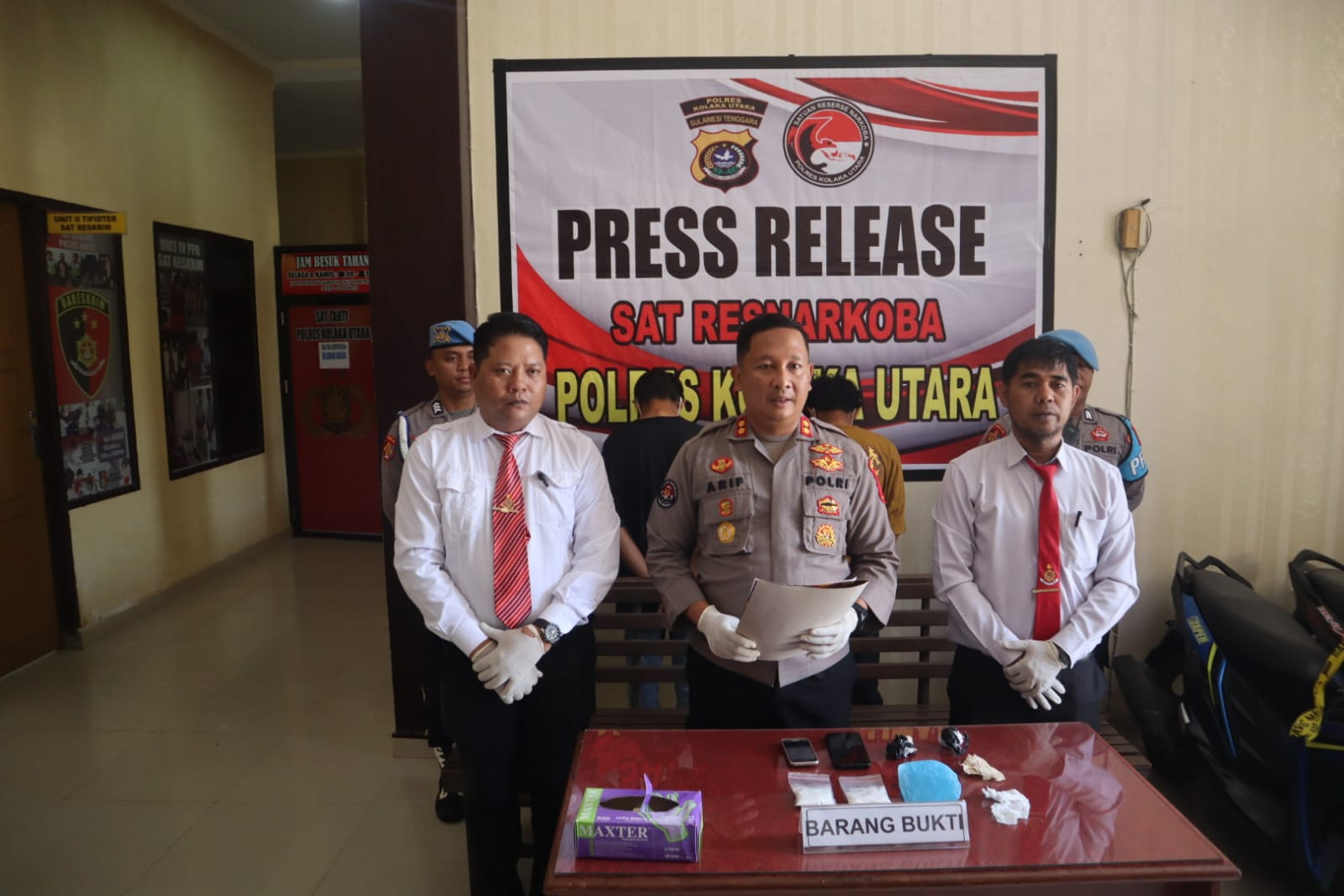 Kepala Kepolisian Resor Kolaka Utara, AKBP Arif Irawan, S.H.,S.I.K.,M.H, beserta didampingi Kasat Resnarkoba dan KBO Satresnarkoba, saat memimpin Konfrensi Pers, hari ini, Senin (16/10/2023) menjelaskan. Bahwa kedua orang pelaku yang diringkus oleh Satresnarkoba Polres Kolaka Utara, berinisial N (21) yang merupakan salah seorang warga Desa Batu Ganda Permai, Kecamatan Lasusua dan R (17) warga Desa Ulubaula, Kecamatan Baula, Kabupaten Kolaka.