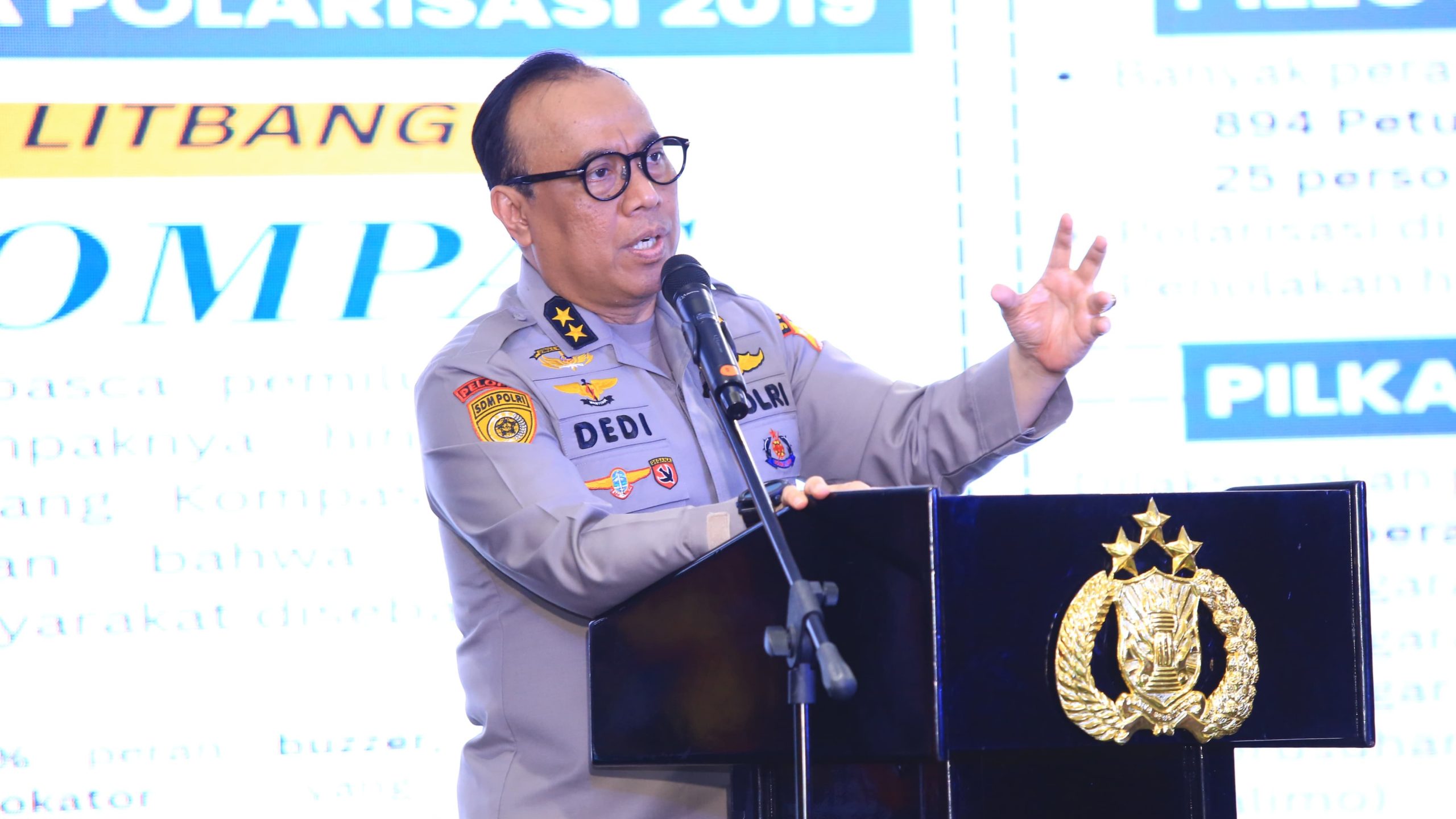 JAKARTA – Asisten Kapolri bidang SDM Irjen Pol. Dedi Prasetyo memberikan pembekalan dalam anev dan koordinasi fungsi kehumasan bertajuk Optimalisasi Pengelolaan Media Digital Oleh Humas Polri Dalam Rangka Mendukung Terselenggaranya Pemilu Damai 2024.