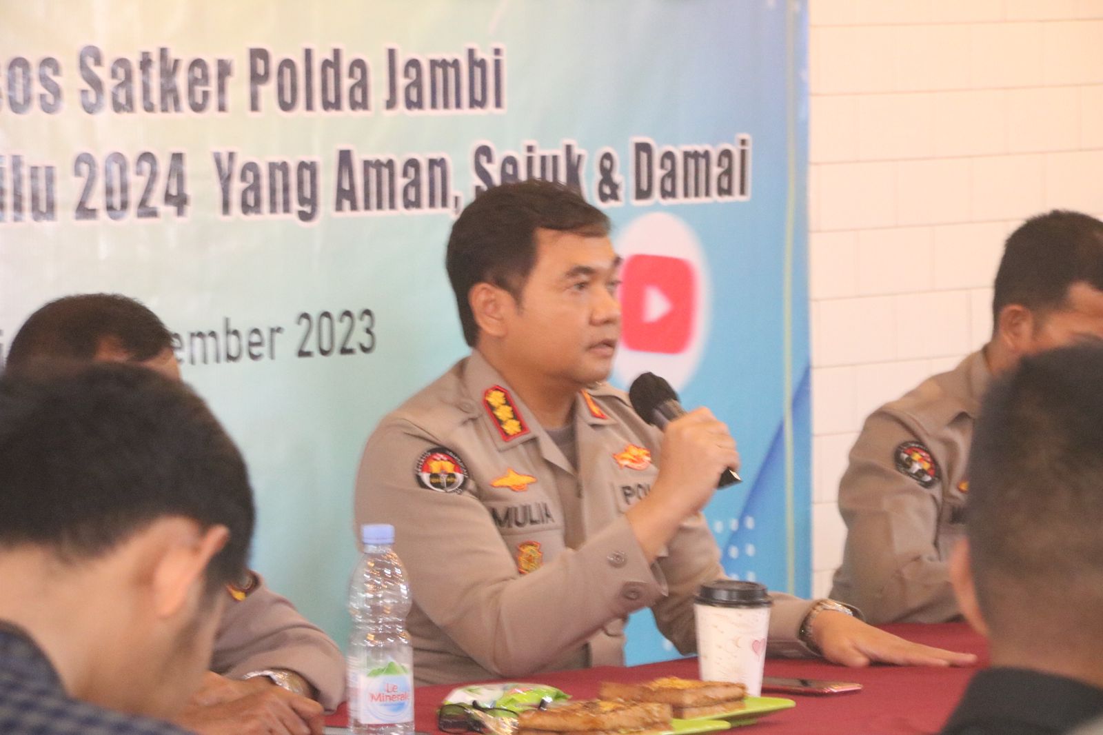 Kabid Humas Polda Jambi Kombes Pol Mulia Prianto, S.,Sos., S.I.K dalam arahannya menyampaikan ucapan terima kasih atas kehadiran rekan-rekan sekalian pada kegiatan hari ini.