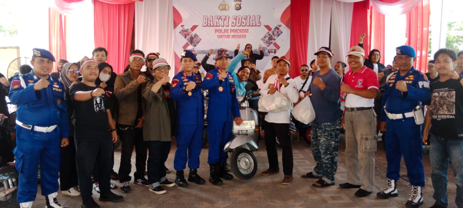 JAMBI – Komunitas Motor Vespa Jambi memenuhi undangan dari Kepolisian Daerah Jambi untuk hadir pada acara Bakti Sosial Polri Presisi Untuk Negeri yang dilaksanakan di halaman mako Ditpolairud Polda Jambi, Senin (22/01/2024).