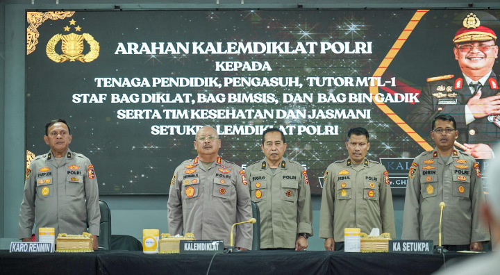 SUKABUMI – Guna mewujudkan Kampus Hijau, Sehat dan Bahagia, Kepala Lembaga Pendidikan dan Pelatihan (Kalemdiklat) Polri, Komjen Pol. Prof. Dr. Chryshnanda Dwilaksana, M.Si, secara langsung memberikan pengarahan serta paparan kepada para tenaga pendidik (Gadik) yang bertugas di Setukpa Lemdiklat Polri Sukabumi, bertempat di ruang aula Anton Sudjarwo, Rabu (05/03/2025).