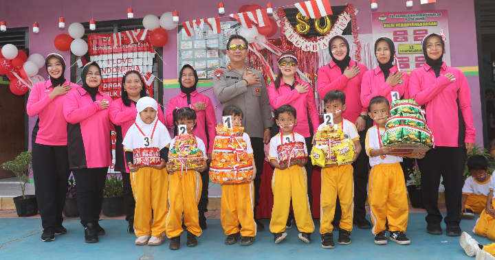 Meriahkan HUT Ke-80 RI, Kapolresta dan Ketua Bhayangkari Cabang Kota Jambi Berikan Hadiah kepada Pemenang Lomba di TK Kemala Bhayangkari 30