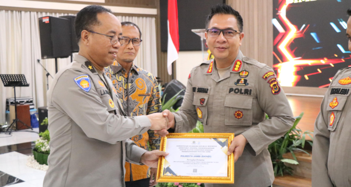 JAMBI – Kapolresta Jambi, Kombes Pol. Boy Sutan Binanga Siregar, S.I.K.,M.H. menerima penghargaan dari Direktorat Jenderal Perbendaharaan (Ditjen) Provinsi Jambi atas kontribusinya dalam mendukung pengelolaan keuangan negara yang transparan dan akuntabel di wilayah hukumnya, Selasa (30/09/2025).