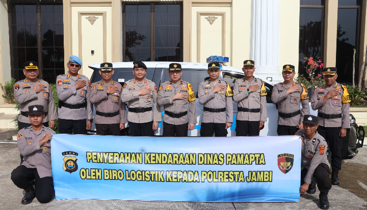 JAMBI – Kapolresta Jambi, Kombes Pol. Boy Sutan Binanga Siregar, S.I.K.,M.H. menerima kendaraan dinas Operasional pensukung yang akan digunakan untuk kegiatan Patroli, Pengamanan, dan Pelayanan Masyarakat Terpadu (Pamapta). Penyerahan kendaraan di lakukan oleh Biro Logistik Polda Jambi yang dipimpin langsung oleh Wakil Kepala Kepolisian Daerah (Wakapolda) Jambi, Brigjen Pol. B. Ali, S.I.K.,S.H. Rabu (04/03/2026) sekira pada pukul 08.00 Wib.