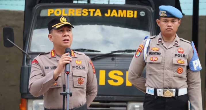 JAMBI – Kepala Kepolisian Resor Kota (Kapolresta) Jambi, Kombes Pol. Boy Sutan Binanga Siregar, S.I.K.,M.H. memimpin langsung upacara apel pagi yang dilaksanakan di halaman Mapolresta Jambi, Senin (13/04/2026).